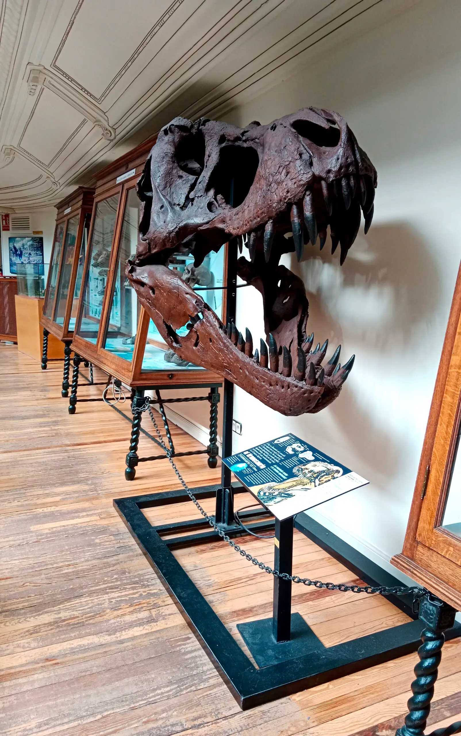 • Una réplica del cráneo y las mandíbulas del ejemplar de Tyrannosaurus rex más completo conocido hasta la fecha y descubierto en 1987 en el Cretácico Superior de Dakota del Sur (Estados Unidos). Este ejemplar se conoce mundialmente como “Stan”, en honor a su descubridor, Stan Sacrison. Esta réplica ingresó en el Museo Geominero en el año 2002.
