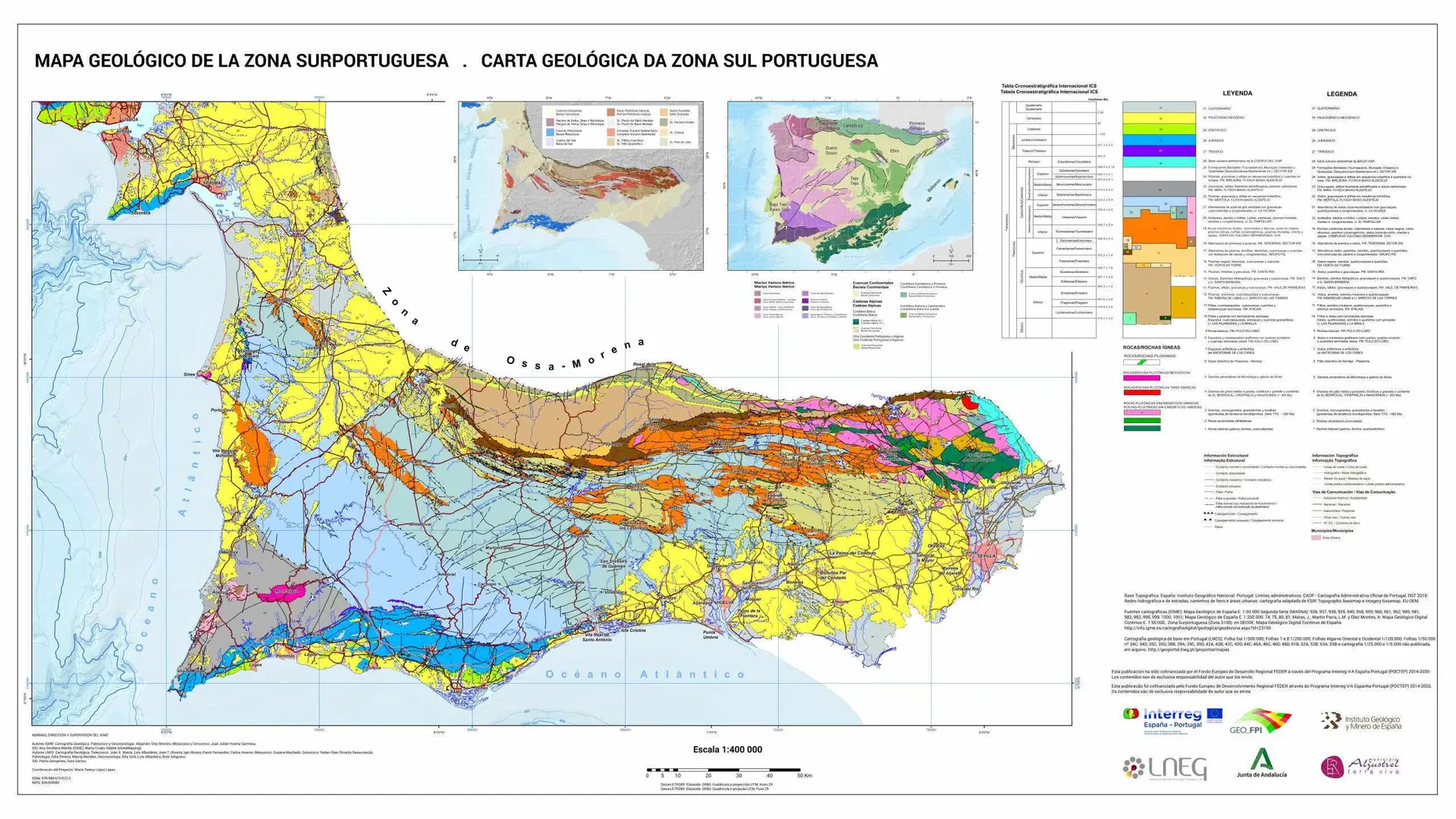 Spanish-Portuguese general geological map (1:400.000) of the South-Portuguese Zone (founded by an Interreg project).