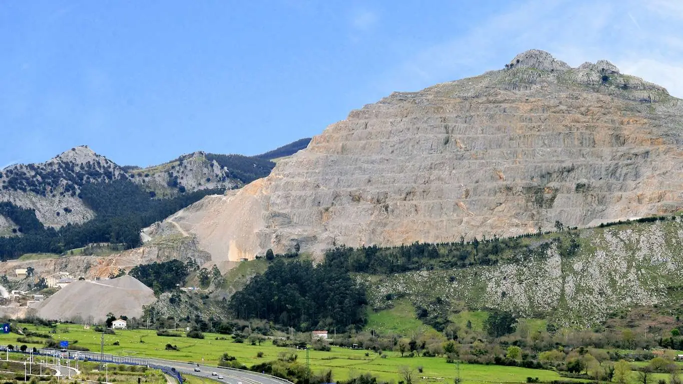 Old exploitation front of Canteras de Santullán that is intended to be integrated into the landscape to avoid the visual impact caused by the creation of banks and berms.