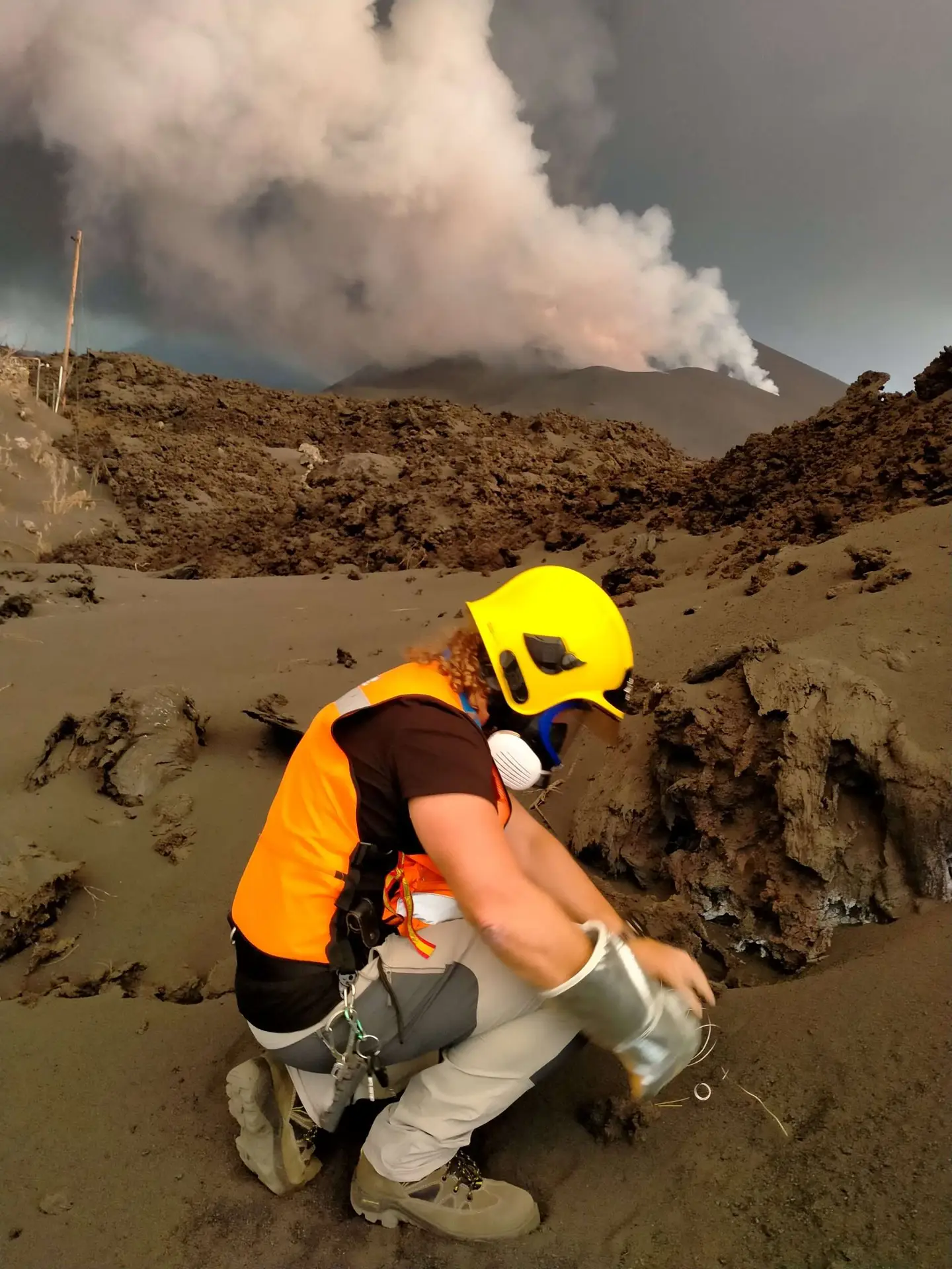 Trabajos de campo in situ durante la erupción volcánica de La Palma.