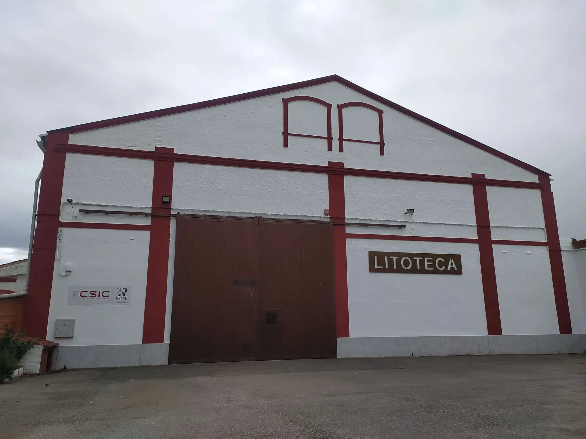 Fachada principal de la Litoteca de Sondeos, edificio centenario donde se ubicaba la fábrica de tejidos de la Sociedad Minero Metalúrgica de Peñarroya (SMMP).