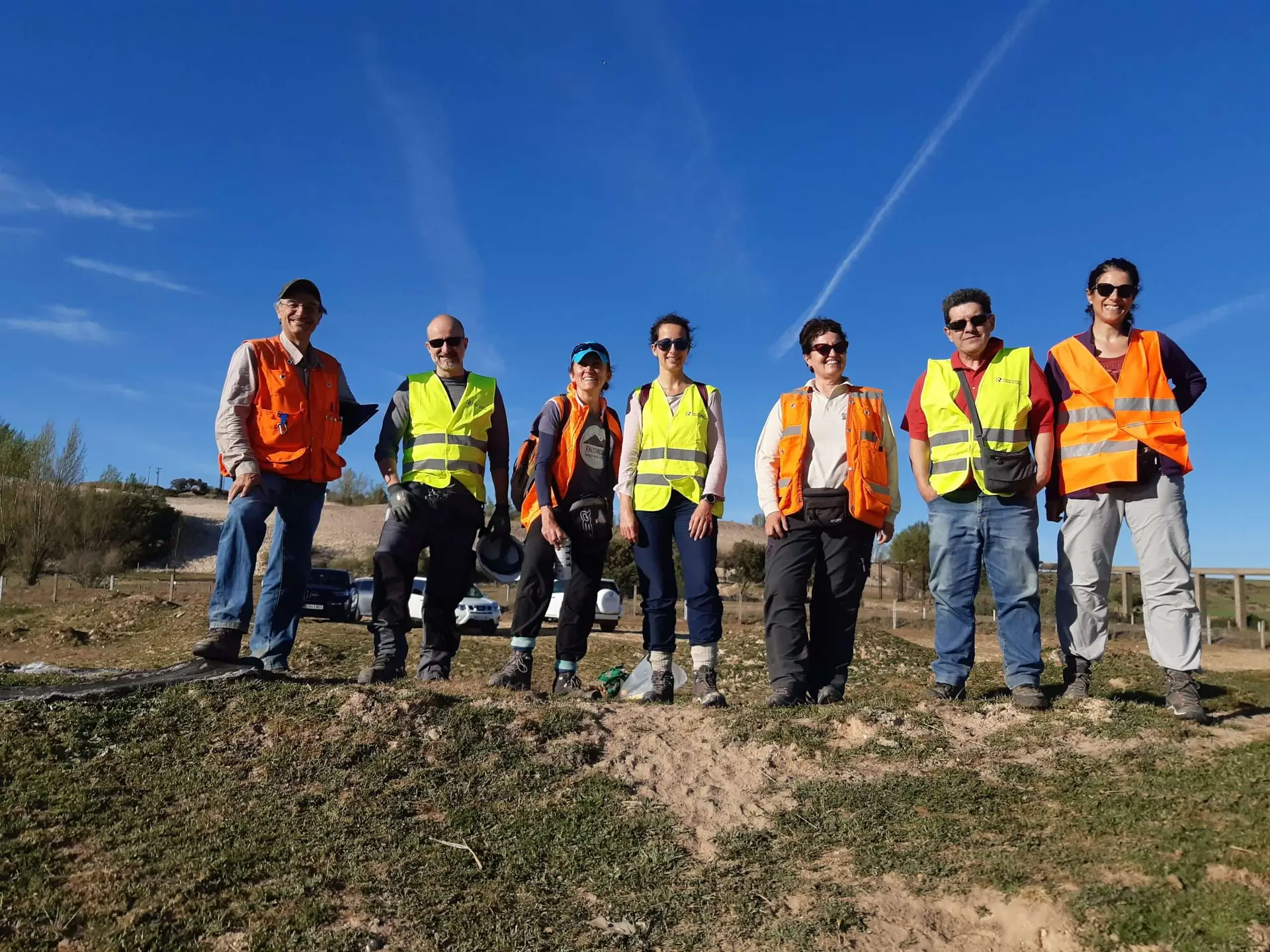 Componentes del equipo de investigación encargado de los trabajos de campo. De izquierda a derecha: Alejandro Díez Montes, Francisco Javier Fernández Naranjo, Susana Timón Sánchez, Virginia Rodríguez Gómez, Teresa Sánchez García, Julio César Arranz González, Teresa Llorens González.